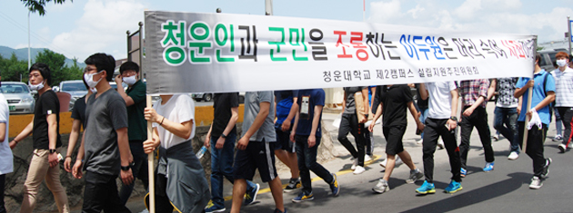 ▲ 지난 9월 '청운대 제2캠퍼스 위치변경 계획'이 교육과학기술부의 승인을 받았다. 그러나 현재 청운대 이전을 반대하는 군민대책위는 교과부를 상대로 '대학이전계획 승인처분 무효 확인' 행정소송을 진행 중이며 법적 공방이 치열하다. 지난 6월에는 청운대학교 학생 1800여명이 "인천캠퍼스 설립을 방해하지 말아 달라"며 홍성읍 시가지 일원에서 침묵의 가두시위를 벌였다. 내년 1월 최종 판결을 앞두고 있으며 재판 결과에 관심이 집중되고 있다.