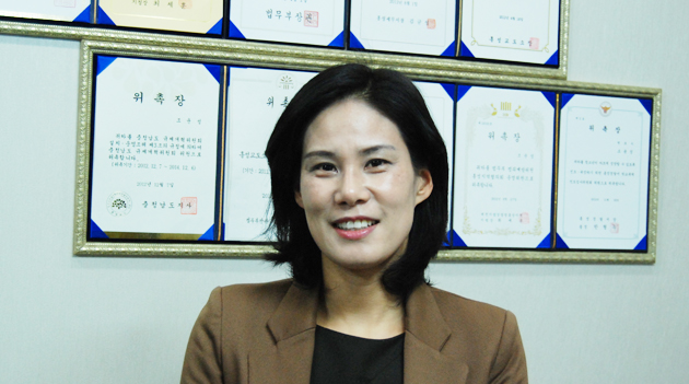 "법률전문가로서 뿐만 아니라 여성으로서의 역할이 동시에 필요한 충남도의 여러 위원회 위원으로 위촉하고 싶다는 러브콜을 많이 받고 있어요. 요즘 같아서는 오히려 제가 여성이라서 더욱 감사하다는 생각이 들어요. 예전엔 다소 여자들에겐 기회가 없었던 사회였지만 '위기는 기회다'라는 말을 떠올리며 이제는 스스로 노력한다면 여성들에게 얼마든지 더 많은 기회가 열려 있는 사회가 된 것 같다"