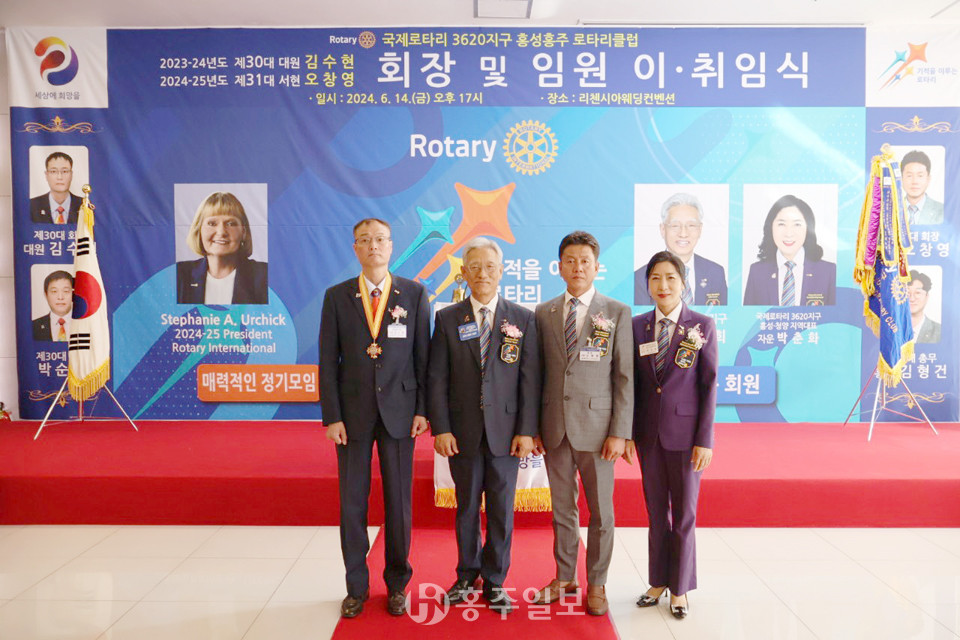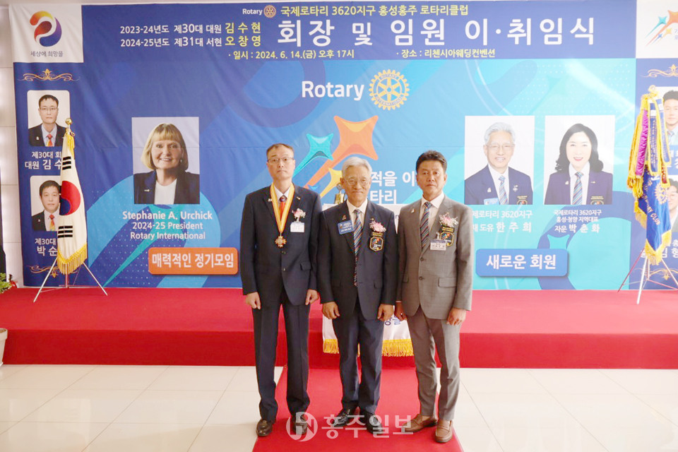 홍성홍주 로타리클럽(이임회장 대원 김수현·취임회장 서현 오창영)는 지난 14일 리첸시아웨딩컨벤션에서 ‘제30·31대 회장 및 임원 이·취임식’을 개최했다.