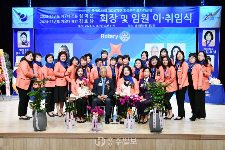 홍성운주 로타리클럽(이임회장 소운 심미은·취임회장 혜인 김효남)은 지난 16일 홍성문화원에서 회장, 총무 이·취임식을 클럽 회원과 지역 로타리클럽 회원이 참여한 가운데 진행했다.<사진>