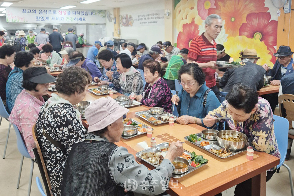 홍성군노인종합복지관(관장 육통스님)은 지난 19일 홍성읍 소재 중식당 ‘태왕’에서 마련해준 자장소스 200인분과 면 70인분을 복지관 경로식당 이용 회원 약 180명에게 점심식사로 대접했다.<사진>