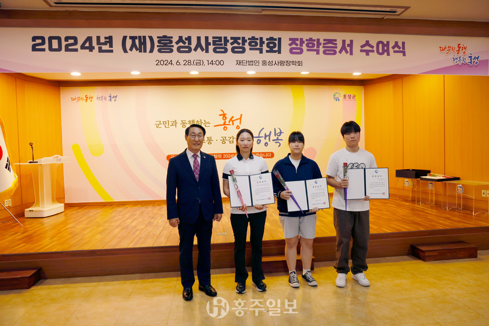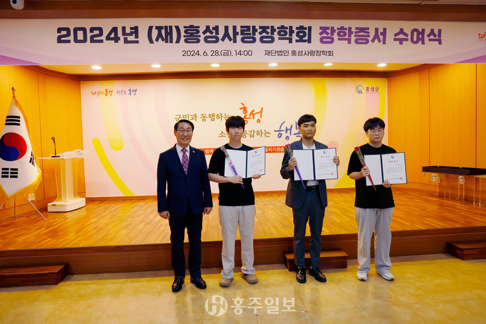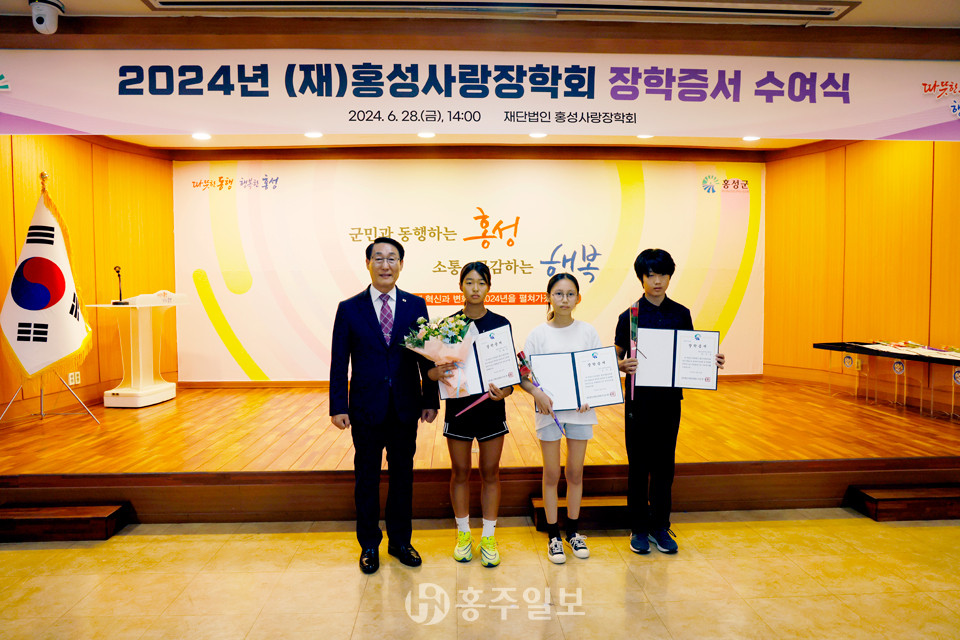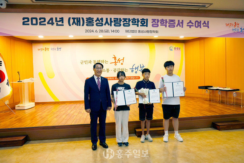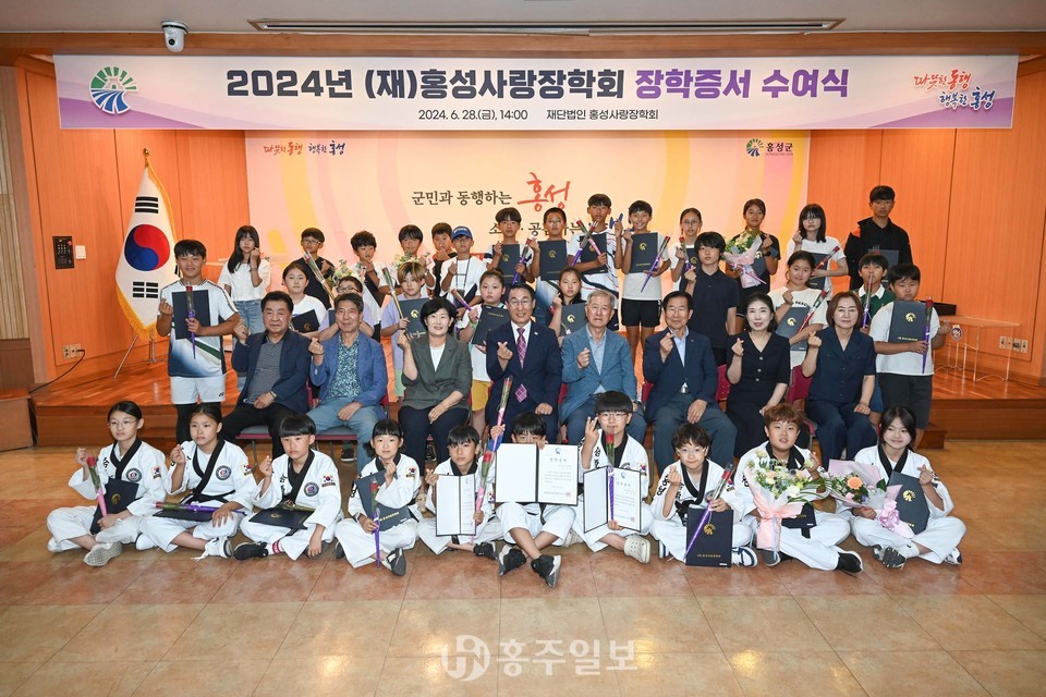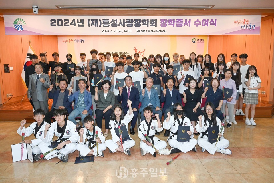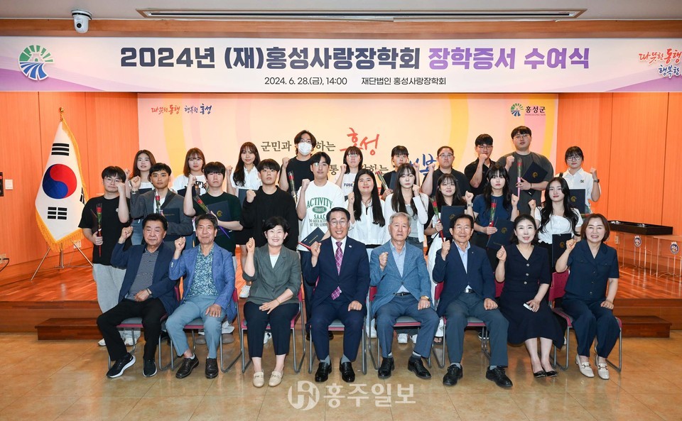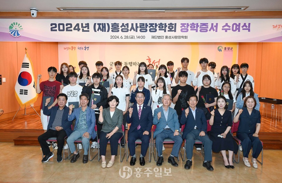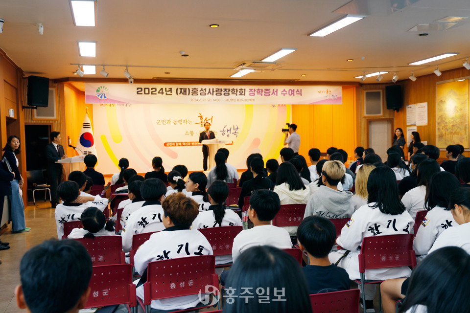 (재)홍성사랑장학회(이사장 이용록)가 28일 홍성군청 대강당에서 ‘2024년 홍성사랑장학회 장학증서 수여식’을 성황리에 개최했다.<사진>