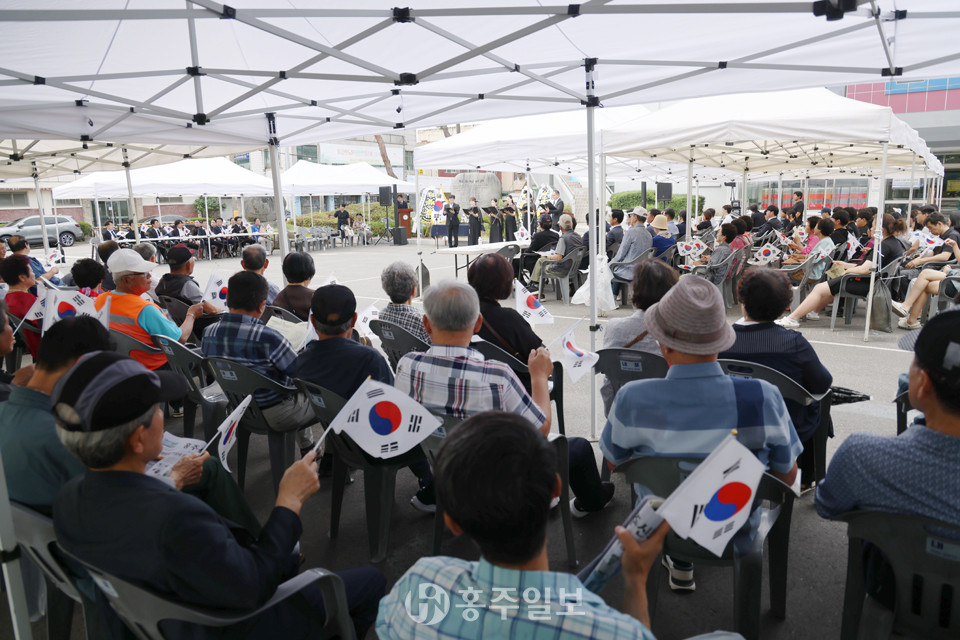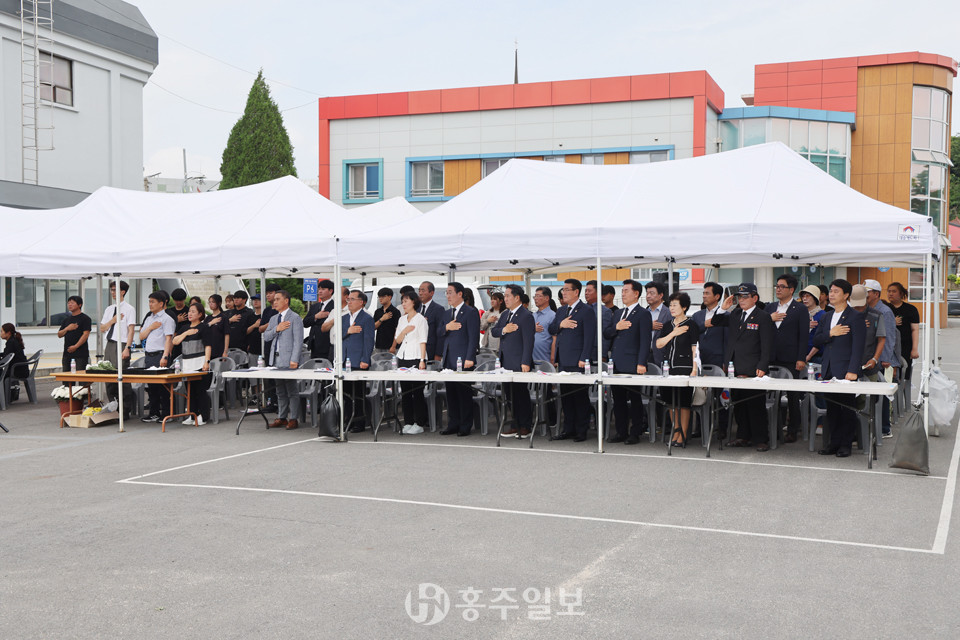 이용록 홍성군수와 강승규 국회의원의 추도사 이후 헌화와 분향이 진행됐다.