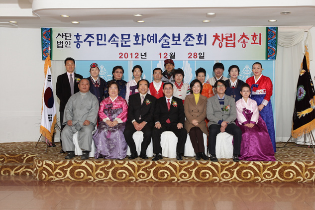 지난달 28일 동원부페웨딩홀에서 사)홍주민속문화예술보존회(이사장 정진완. 이하 보존회) 창립총회가 열렸다. 이번 보존회 창립은 홍성군 내에서 전승되어온 홍장군제, 최영장군 영신굿을 발굴·보존하고 발전시켜, 홍주문화 진흥을 꾀하고자 홍성을 주축으로 활동하는 불교인· 민간신앙인· 예술인들의 뜻이 모여 이뤄졌다.