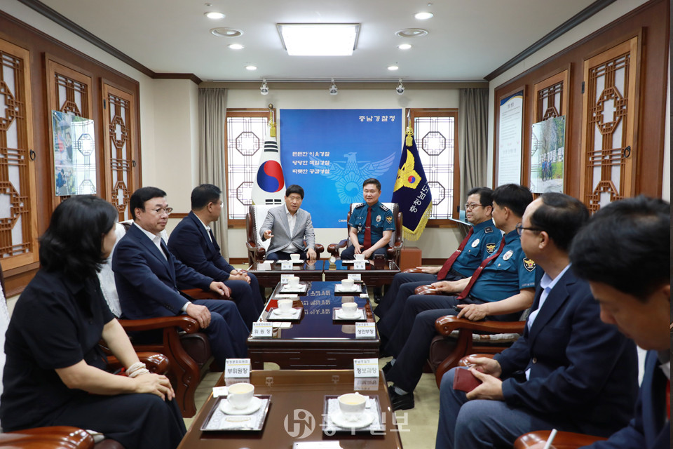 오문교 충남경찰청장은 “경찰행정에 많은 관심과 애정이 있는 홍성현 의장님을 비롯한 전체 의원들께서 주민의 목소리에 귀 기울여 도민 안전을 위한 정책에 많은 지원과 지혜를 모아 주시기를 바란다”고 말했다.