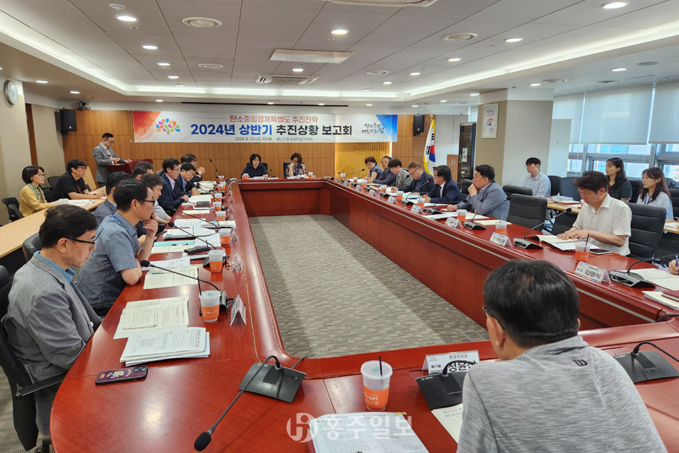 충남도가 전국 최초로 탄소중립경제특별도를 선포한 지 1년 8개월 만에 3180억 원의 국비를 확보하는 성과를 거뒀다. 충남도는 지난달 28일 도청 중회의실에서 ‘탄소중립경제 특별도 추진전략 2024년 상반기 추진상황 보고회’를 개최하고 주요 성과를 점검했다.<사진>