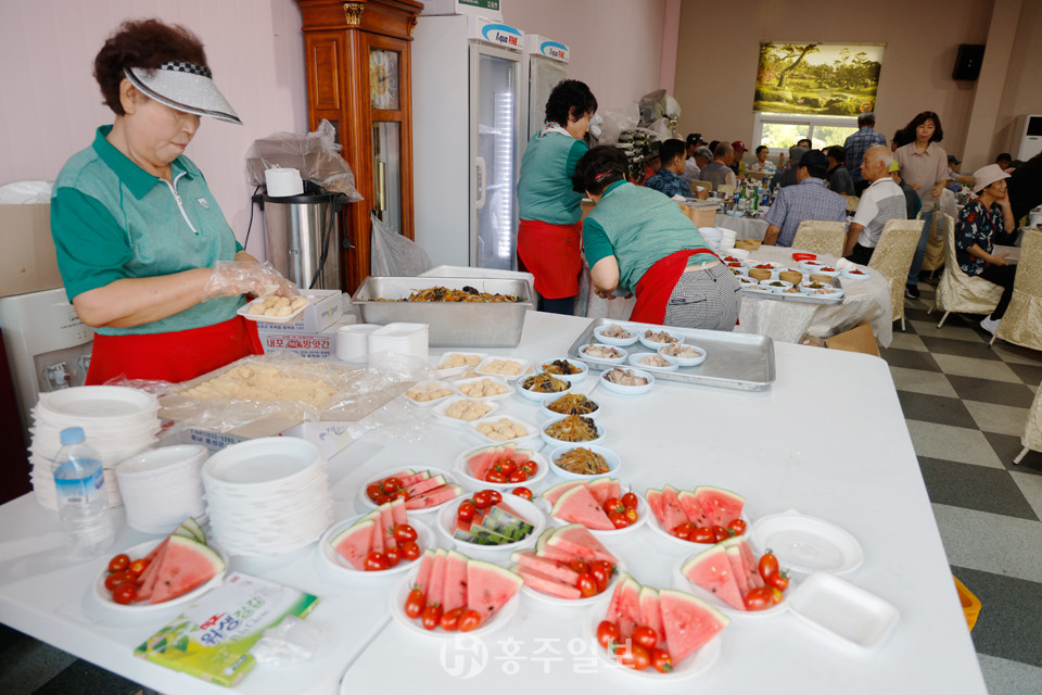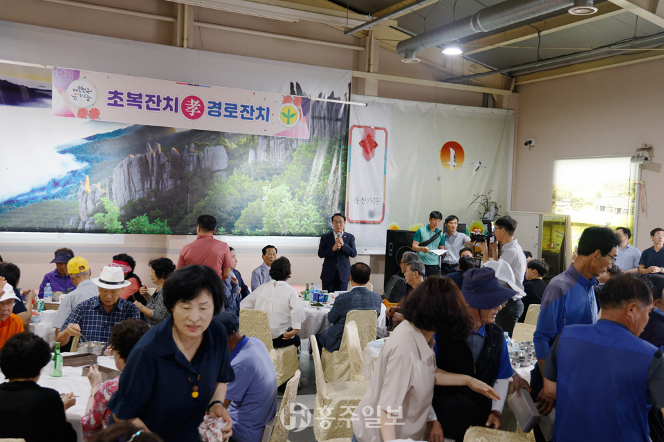 홍북읍새마을지도자회(회장 박상신)와 홍북읍새마을부녀회(회장 이은화)가 협력해 홍북읍에 거주하는 어르신들을 대상으로 어르신들의 건강과 행복을 기원하는 ‘초복맞이 효 경로잔치’를 15일 돌산가든에서 성황리에 개최했다.<사진>