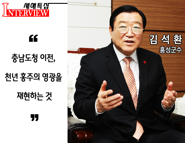 역사적인 충남도청 이전과 맞물려 홍성은 변화와 개혁의 물결이 일고 있다. 김석환 군수는 내포신도시와 관련, "신도시 건설로 홍성 구도심이 공동화되는 일이 없도록 차별화된 도시개발을 추진하겠다"며 "홍성지역만이 가진 역사성과 문화예술 자원, 관광자원 등을 부각시켜 차별화된 도시를 만들겠다"고 말했다. <편집자 주>