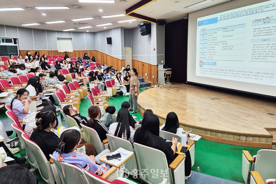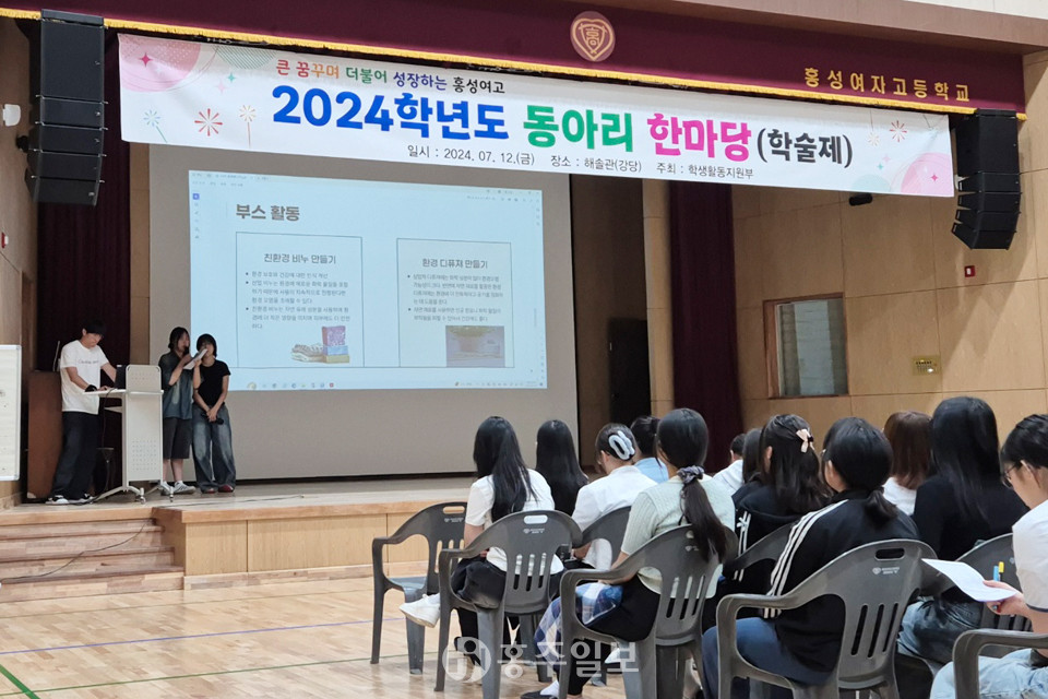 2일차에는 동아리 학술제를 진행했다. 오전에는 홍성여고의 19개 교육과정 동아리가 참여해 1~2학년 학생들을 대상으로 한 학기 동안의 각 동아리의 활동 및 성과를 공유했다.