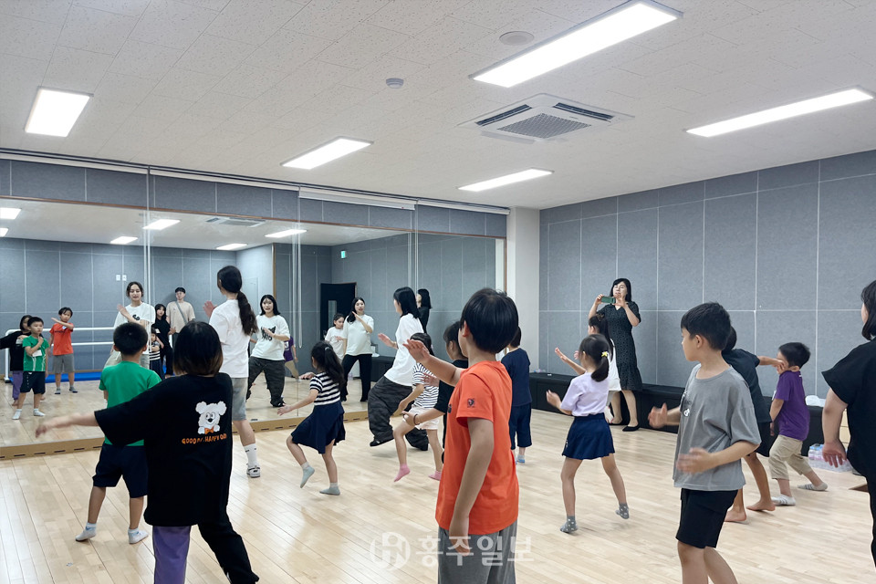이날 프로그램에서는 먼저 K-POP 댄스의 기초 동작 학습시간을 가졌다. 공연 댄스 커리큘럼에서 필수적인 기본 동작을 난이도별로 구분해 학년에 구애받지 않고 모든 학생이 참여할 수 있도록 진행됐다.