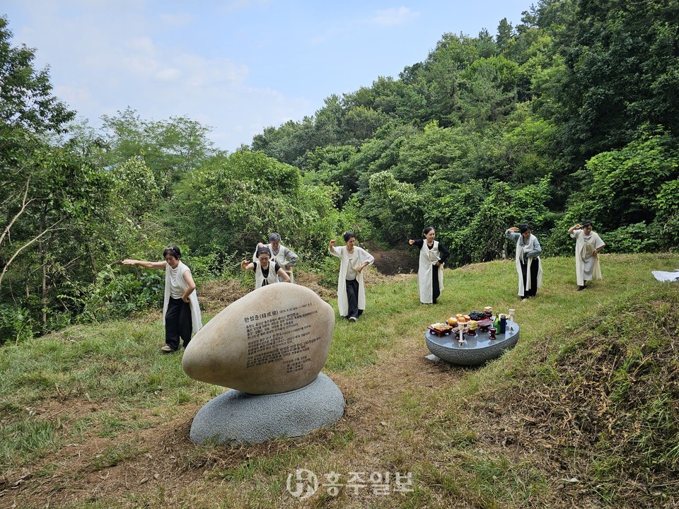 이애주문화재단(이사장 유홍준)이 지난 15일 한국 전통춤의 대가 한성준(1874~1941) 선생의 묘소(홍성군 갈산면 상촌리 산23-1)에서 산신제와 묘제를 올리고 비석을 건립하는 행사를 치렀다.
