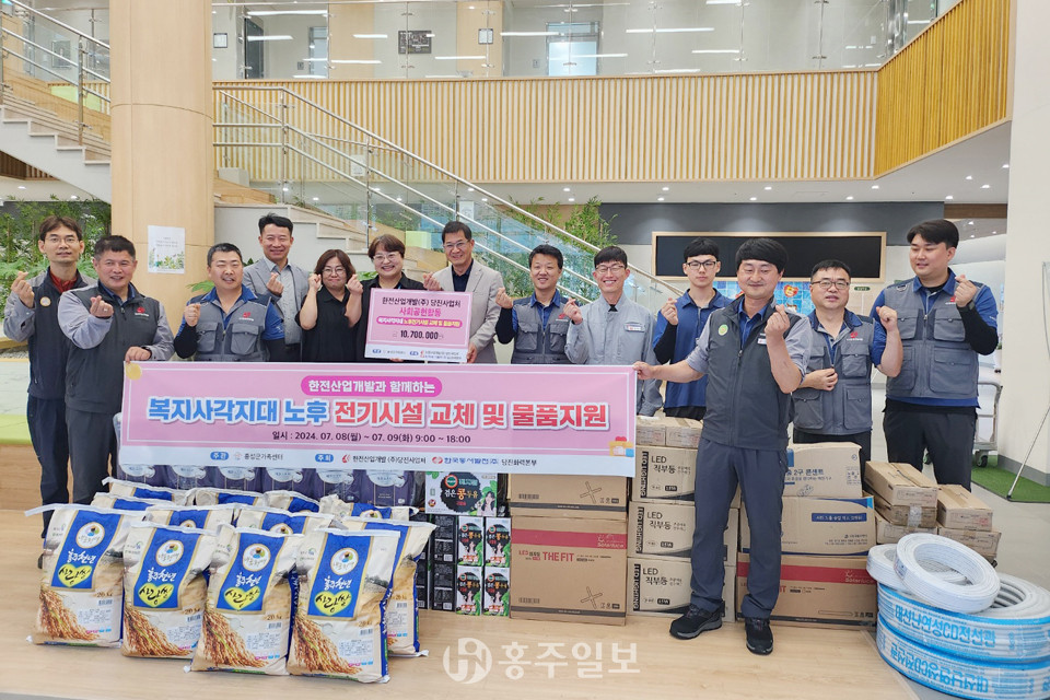 홍성군가족센터와 한전산업개발 당진사업처, 한국동서발전 당진본부가 협력해 지난 8일과 9일 이틀간 화재 위험에 노출된 12가구의 노후 전기설비를 개선하는 사업을 진행했다.<사진>