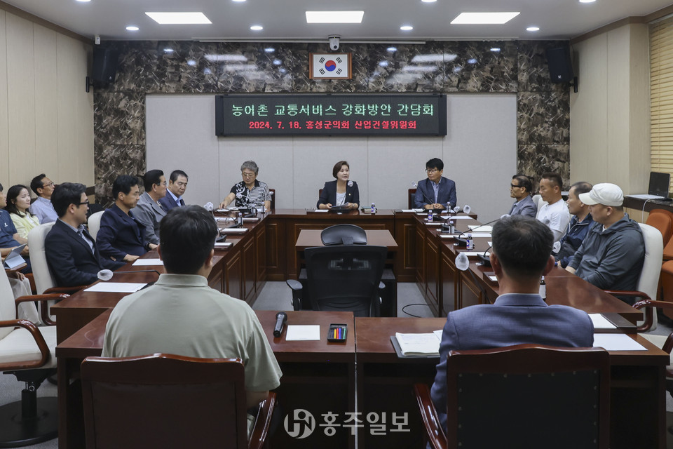 홍성군의회 산업건설위원회(위원장 최선경)는 지난 18일 농어촌 교통서비스 강화 방안을 모색하기 위해 간담회를 개최했다.<사진>