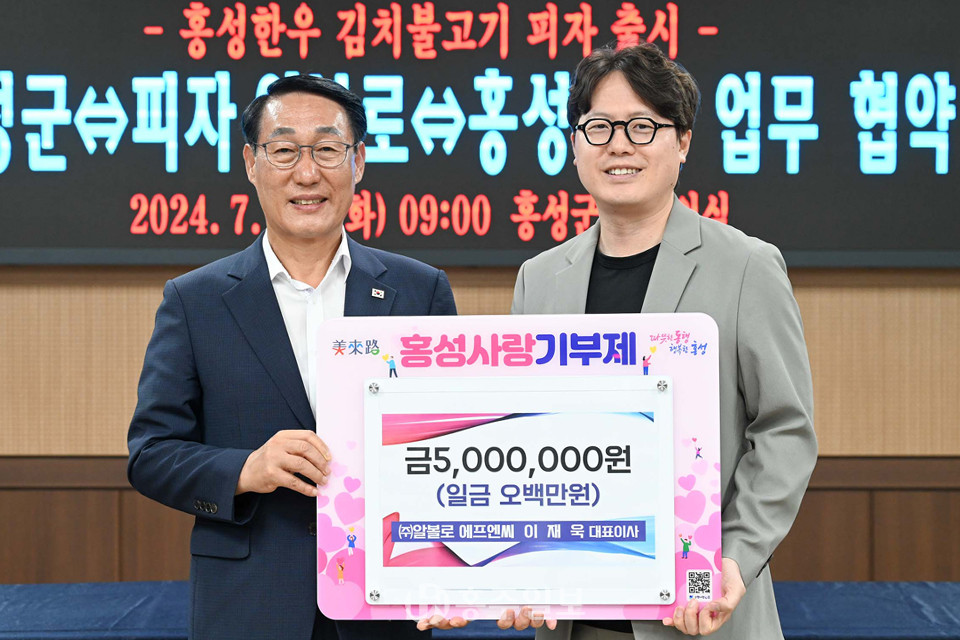 협약식 후에는 홍성군 홍보대사를 맡고 있는 이재욱 대표가 고향사랑기부제로 500만 원을 기탁하며 훈훈한 고향사랑의 마음을 전하는 뜻깊은 시간을 가지며 행사에 의미를 더했다.