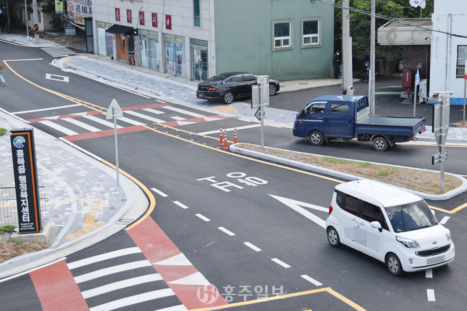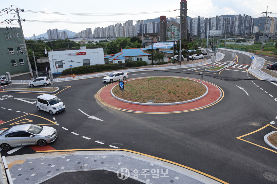 지난해 홍북읍행정복지센터가 기존 부지 길 건너편으로 이전하면서 그 자리에 새로운 회전교차로가 설치됐다. 이 회전교차로는 교통 흐름을 원활하게 하고, 운전자들에게 편의를 제공하기 위해 지난달 말경 완공됐다.