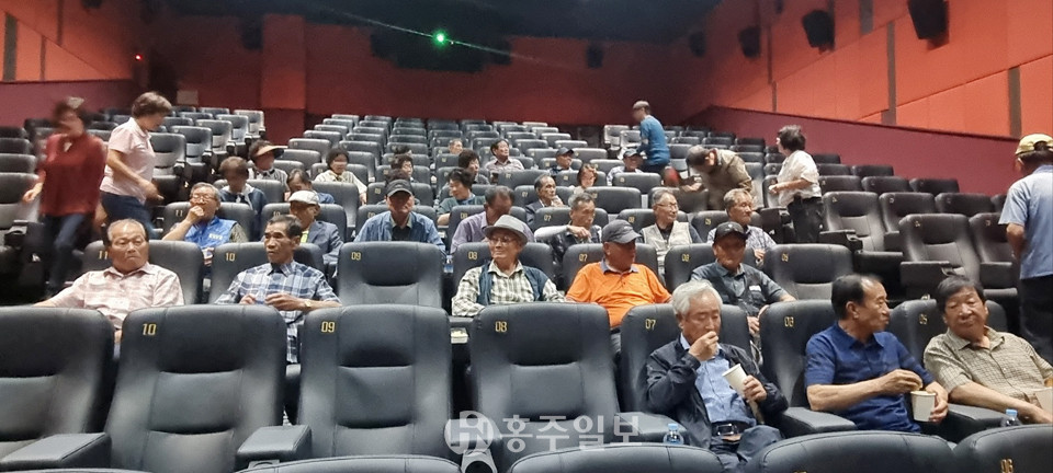 대한노인회 홍성군지회(지회장 조화원)는 지난 19일 노인일자리 활동 참여 어르신에게 문화체험활동으로 박정희(경제대국을 꿈꾸는 남자) 영화를 관람시켜드렸다. 조화원 지회장은 참여해주시는 어르신들의 노고에 감사를 드린다고 전했다.