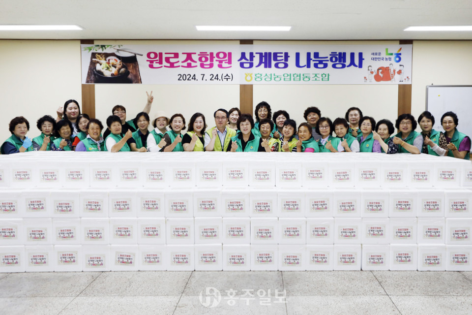 홍성농업협동조합(조합장 박문수)이 중복을 하루 앞둔 24일 ‘원로조합원 삼계탕 나눔행사’를 실시했다.<사진>
