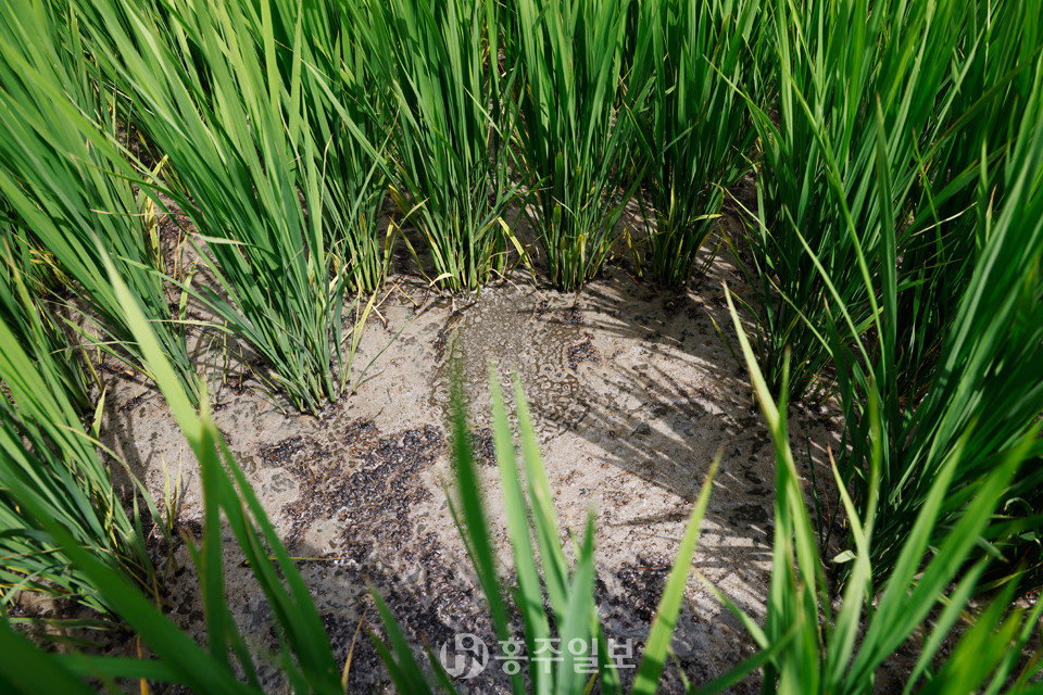 서원탁 홍성군농업기술센터 친환경기술과장은 “토양 속에 함유된 영양 염류의 함량을 나타내는 기준인 ‘전기전도도’가 너무 높아 벼 생육과 영양분 흡수가 불가능한 심각한 상황으로 벼 잎사귀가 타들어 가는 현상을 확인했다”면서 “연작으로 인해 토양이나 물의 전기전도도가 높아지면 토양 속 삼투압이 높아져 작물은 스스로 기공을 폐쇄해 수분 흡수를 중지해 성장이 더뎌지고 수확량이 줄어든다”고 설명했다.