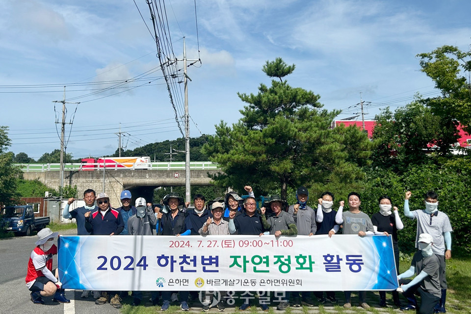 은하면바르게살기위원회(위원장 최영선)는 지난달 27일 오전 9시부터 장마로 인해 떠내려온 광천천 주변 하천쓰레기 수거 작업에 구슬땀을 흘렸다.<사진>