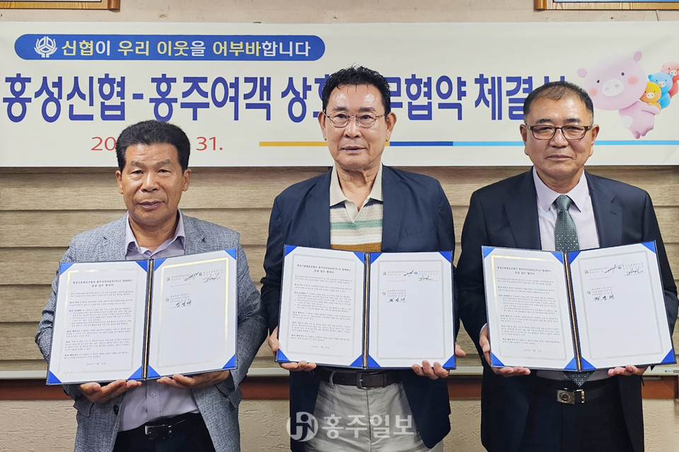 홍주여객자동차㈜(대표이사 이실)와 홍주여객 산하 노동조합 홍주여객지부(지부장 장영태), 홍성신용협동조합(이사장 김민겸)은 지난달 31일 홍성신협 본점에서 상호 업무협약식을 가졌다.