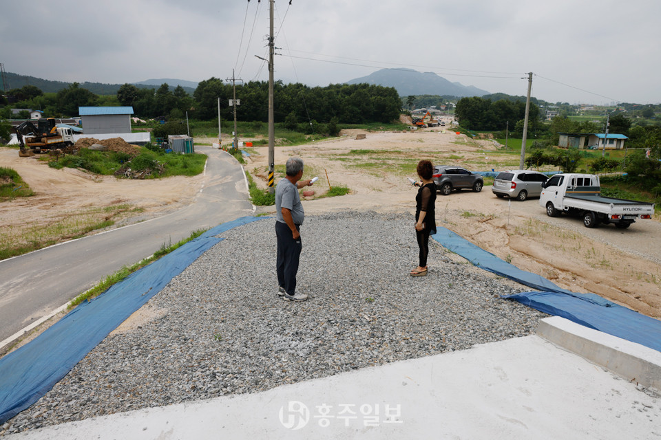 주민들은 만약 설계도대로 공사가 진행될 경우, 6m가량 성토하는 대신 3m 이내로 성토해 도로 확장 공사가 이뤄지길 바라고 있어요.