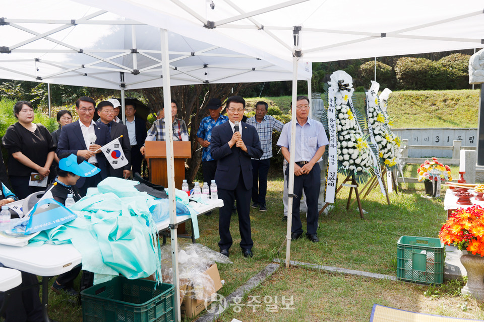 김덕배 홍성군의회 의장은 3·1운동의 미래지향적인 독립 투쟁의 중요성을 강조하며, “독립애국지사들의 피땀어린 노력과 정신을 잠시도 잊지 말아야 한다”고 말했다.