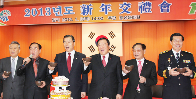 홍성문화원(원장 유환동)이 주관하는 신년교례회가 지난 3일 군청 대강당에서 김석환 홍성군수를 비롯한 관내 기관단체장 등 200명이 참석한 가운데 개최됐다. 신년교례회는 계사년 새해를 맞아 각계각층의 인사가 한자리에 모여 2013년 한 해 동안 홍성군 발전을 위해 노력할 것을 다짐하는 자리로 마련됐다.