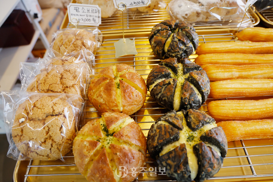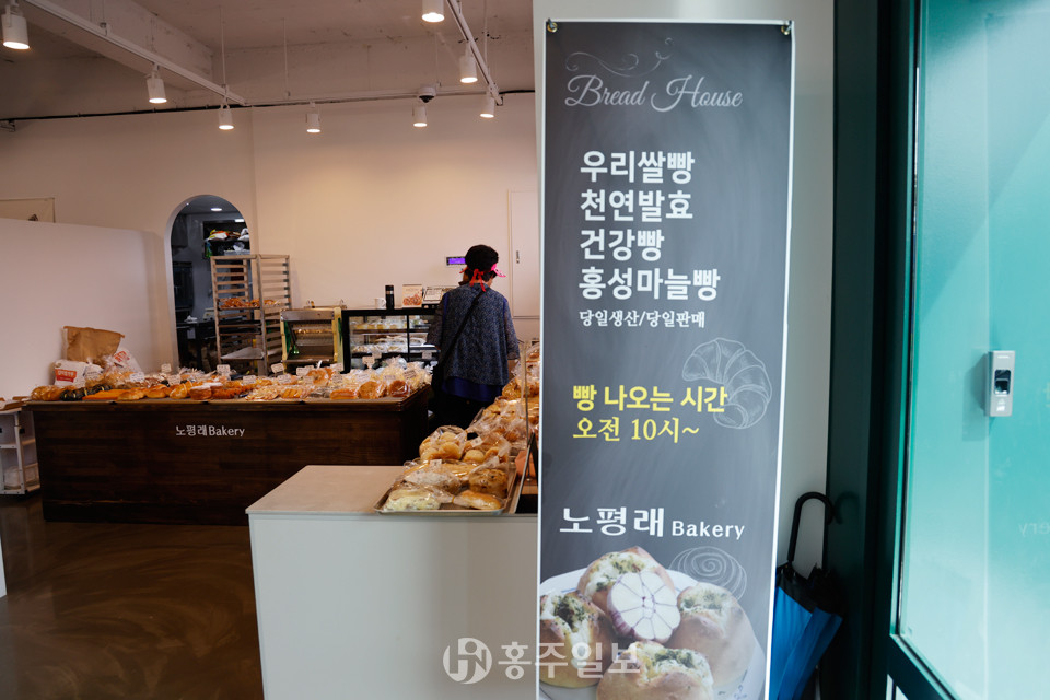 노평래 Bakery는 홍성마늘을 원료로 한 ‘홍성마늘 육쪽 크림치즈빵’을 대표 메뉴로 생산하며, 홍성마늘 특화점을 목표로 하고 있다.