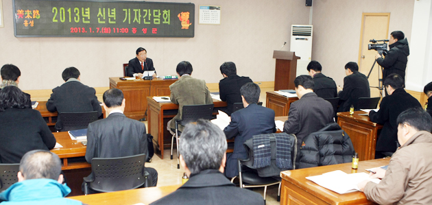 김석환 홍성군수는 올해를 "홍성이 충남의 중심으로 도약하는 출발선 상에 서 있다"며, 군의 달라진 위상에 강한 자신감을 피력했다. 또 군민들에게 "힘찬 도약, 희망 홍성의 대열에 동참해 줄 것"을 호소했다. 지난 7일 오전 11시 군청 회의실에서 김석환 군수는 군청 출입기자들과 간담회를 갖고 지난해 의 군정 성과와 당면과제 및 올해 역점사업 등을 설명하며, 2013년 군정 추진의 구상을 밝혔다.