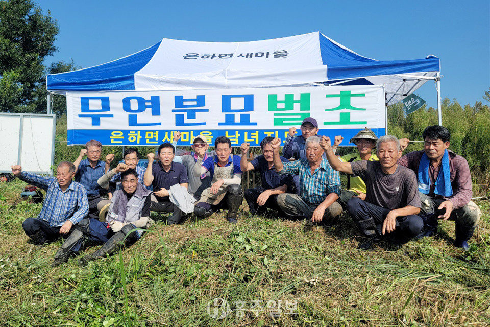 은하면새마을지도자협의회(회장 오덕근)는 지난 9일 다가오는 추석을 맞이해 은하면 화봉리 인근 무연분묘 150기를 대상으로 벌초행사를 가졌다.<사진>