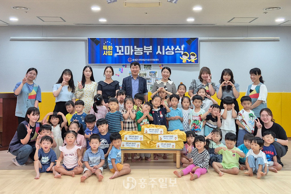 홍성군어린이급식관리지원센터(센터장 배인호)가 지난 5일 수상 시설을 직접 방문해 상장과 상품을 전달하는 방식으로 특화사업 ‘꼬마농부 공모전’ 시상식을 개최했다.<사진>