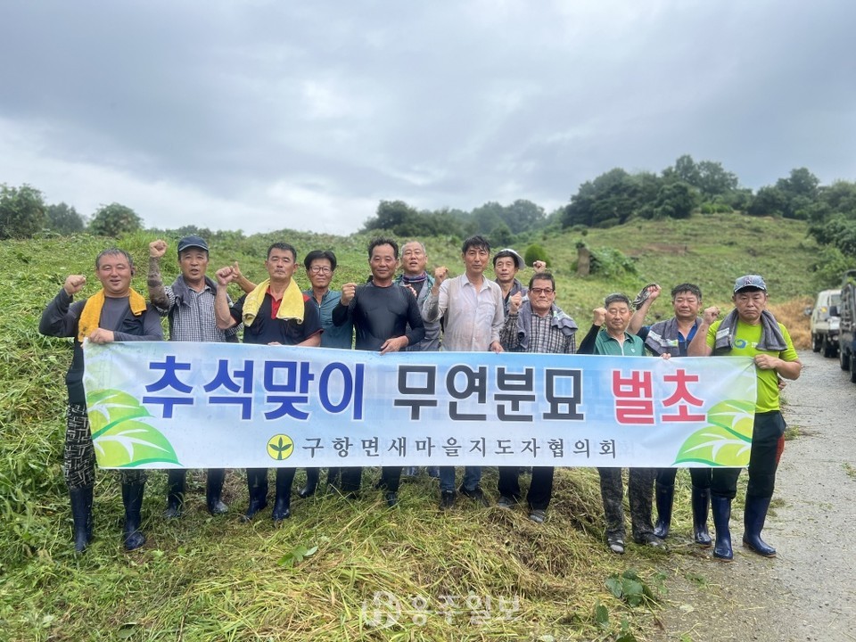 최해영 구항면장은 “새벽부터 한마음으로 무연분묘 벌초작업에 구슬땀을 흘리며 봉사해 주신 회원님들의 노고에 감사드리며 이번 봉사활동으로 자칫 소홀해지기 쉬운 조상 숭배 정신을 되살리고 우리의 아름다운 풍속이 계속해서 이어나가길 바란다”고 말했다.