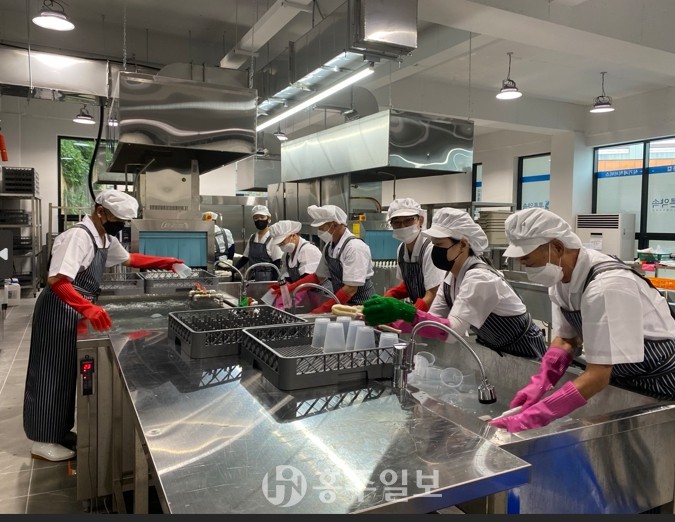 홍성지역자활센터는 지난 19일 탄소중립과 저소득층 일자리 창출을 동시에 실현하는 다자원 재순환 다회용기 식기 세척 사업 ‘푸른약속’ 사업장을 신설 개시했다고 밝혔다.<사진>