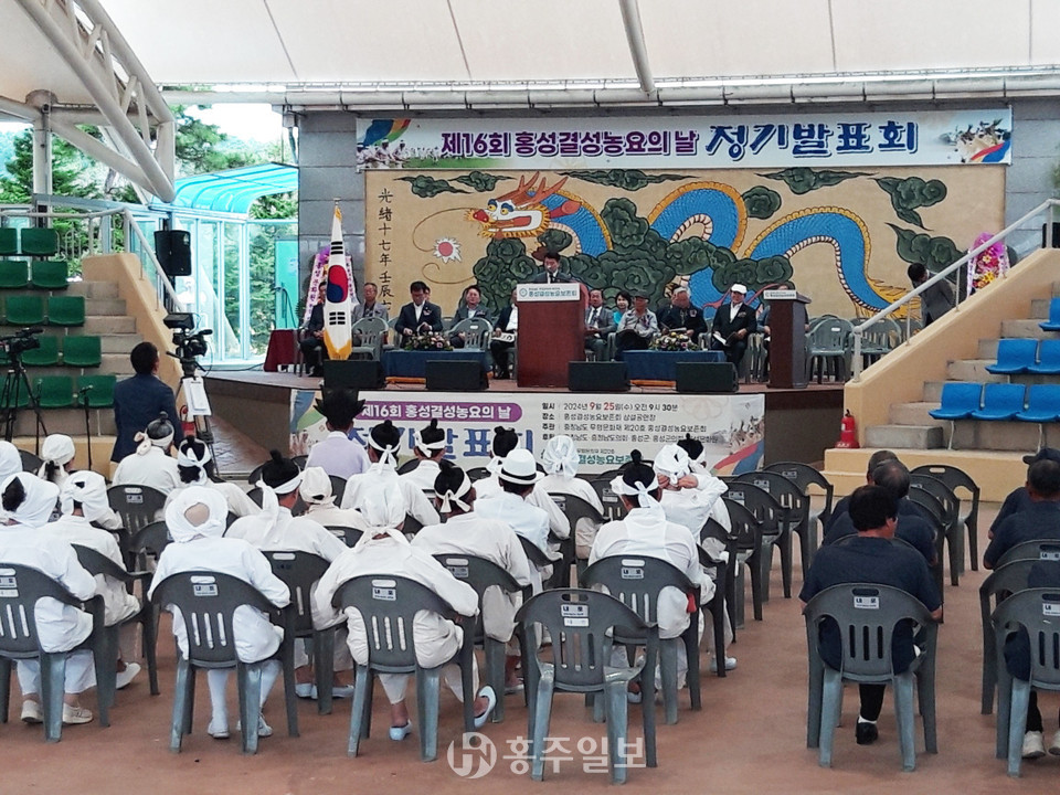 홍성결성농요보존회(회장 최광돈)가 주최한 제16회 홍성결성농요의 날 정기발표회가 지난 25일 결성농요상설공연장에서 성황리에 개최됐다.<사진>