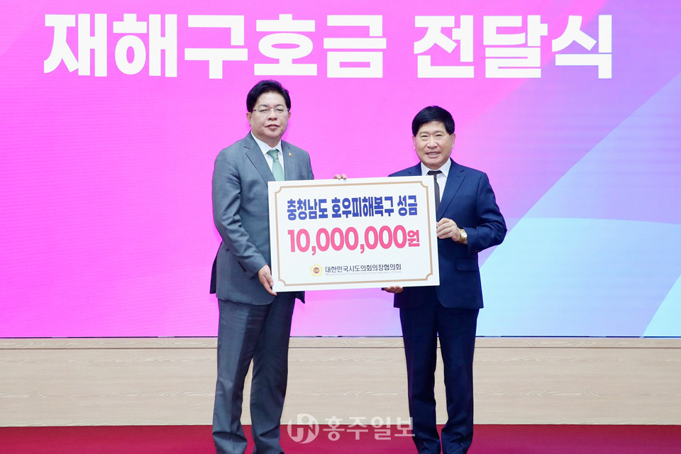 충남도의회(의장 홍성현)는 지난달 30일부터 이틀간 부산에서 개최된 대한민국시도의회의장협의회 제5차 임시회에 참석해 지난 7월 호우 피해에 대한 재난구호금 1000만 원을 지원받았다.<사진>