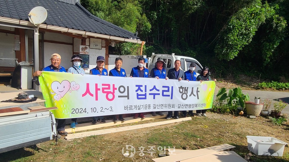 갈산면바르게살기위원회(위원장 차기준)는 지난 2일부터 3일까지 주거환경이 열악한 압곡마을 저소득 가구를 방문해 집수리 봉사활동을 펼쳤다.<사진>