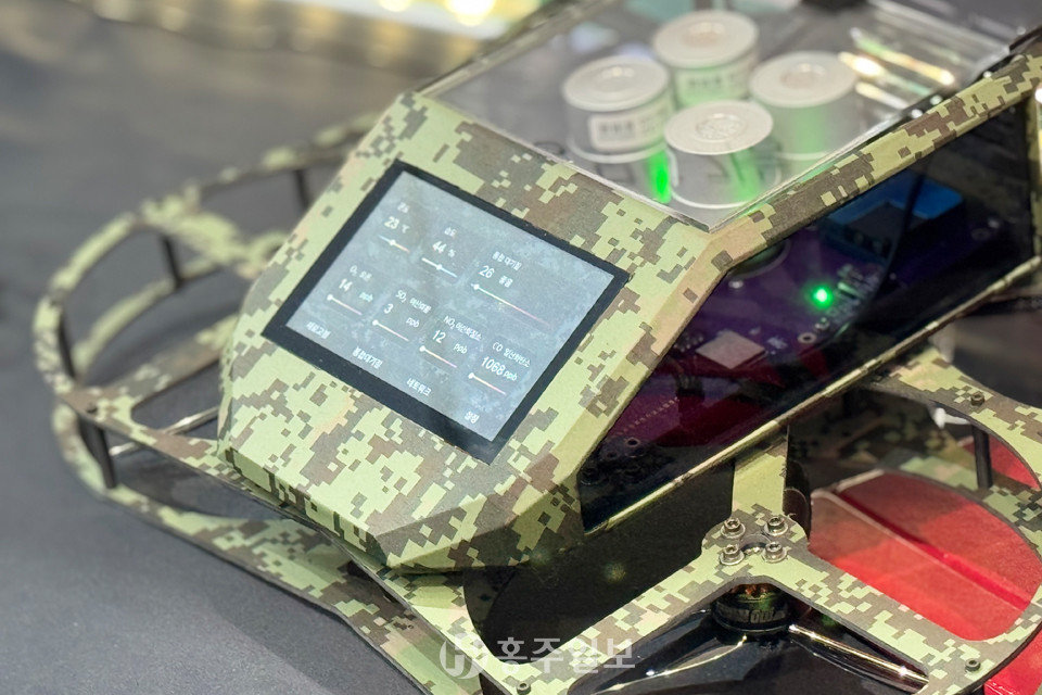 ‘화생방 탐지드론’은 최첨단 센서를 장착해 생화학적 위험을 신속하게 탐지할 수 있는 능력으로 방산 관계자들의 큰 관심을 끌었다.