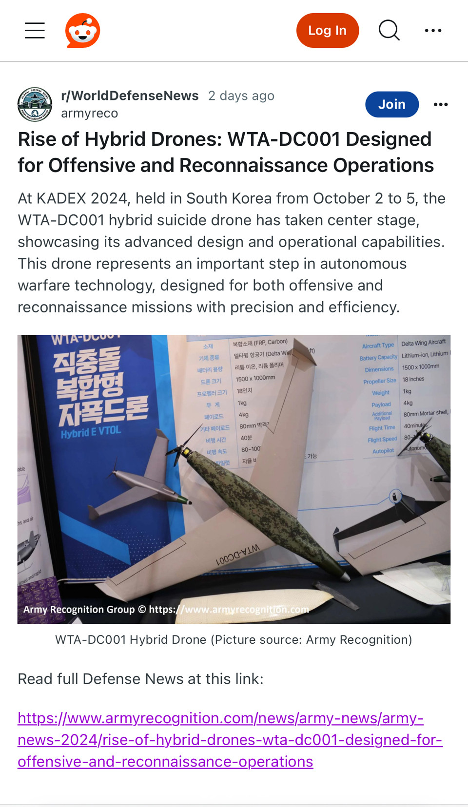 이번에 윙테크가 선보인 드론은 △복합형 직충돌 자폭드론 △드론택시 △화생방 탐지드론 등 3가지 드론으로 그중 ‘복합형 직충돌 자폭드론’은 테스트를 통해 뛰어난 정확도를 입증하며 군사작전에서 중요한 역할을 할 것으로 기대를 모으고 있다. 특히 목표물에 대한 실시간 식별과 정밀 타격 기능을 갖추고 있어 전장 환경에서의 전략적 우위를 제공할 것으로 평가받고 있다. 또한 최근 해외 군사 전문지 <Army Recognition>에 소개되며 국제 방산업계의 큰 관심을 받기도 했다.