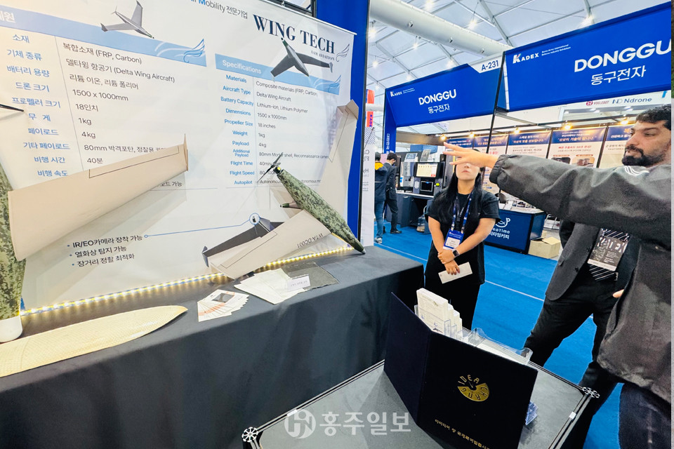 드론 전문기업 ‘윙테크(대표 박건호)’가 지난 2일부터 6일까지 계룡시에서 열린 아시아 최대 방위산업전시회 ‘카덱스(KADEX) 2024’에 처음으로 참가해 차세대 드론 3종을 선보였다.