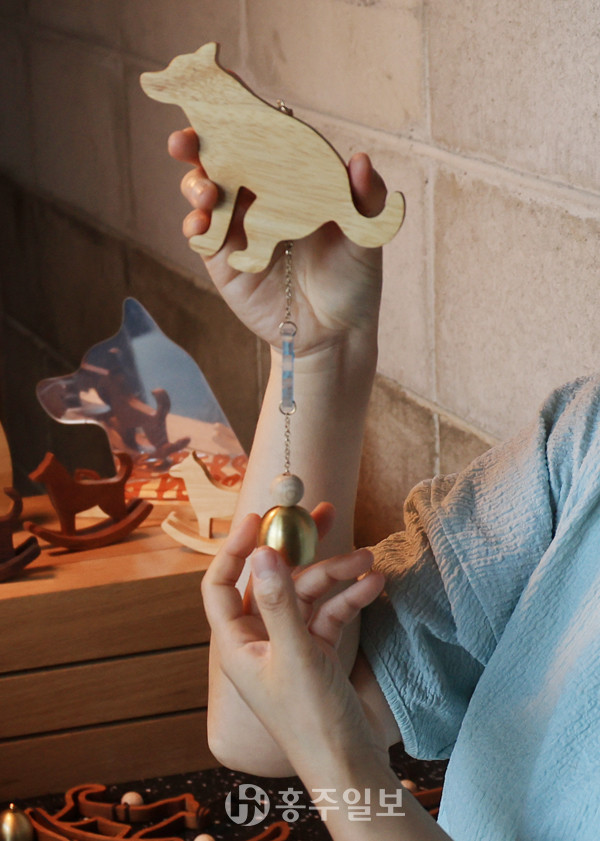 시작은 어느날 웨루나무의 무늬가 김 작가의 반려견 진돗개와 비슷하게 느껴져 ‘이걸로 닮은 무언갈 만들어보자’라는 생각에서 목공으로 흔들목마의 기본틀과 진돗개의 외형를 결합한 것이 제품화의 시작이었다. 처음에는 이것을 사업까지 생각한 것은 아니었지만 개인 SNS에 올린 사진이 주변 지인들로부터 호응을 얻기 시작하면서 남편과 고민 끝에 창업과 제품화를 이룰 수 있었으며 현재는 목공제품뿐 아니라 진돗개를 주제로 한 여러 소재의 제품들이 소비자의 관심을 받고 있다.