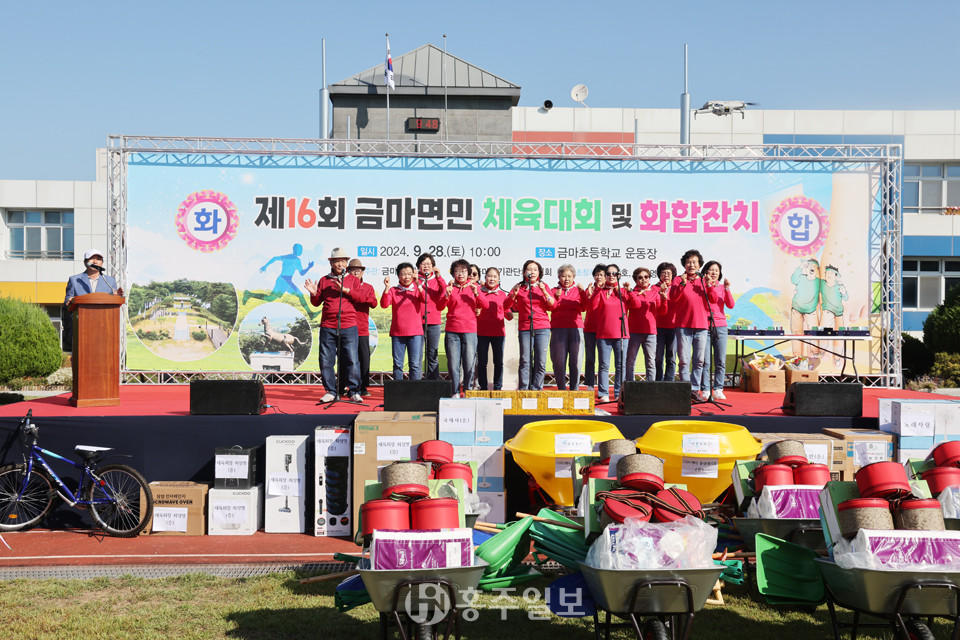 제16회 금마면민 체육대회 및 화합잔치가 지난달 26일 금마면민 1000여 명이 참석한 가운데 금마초등학교 운동장에서 열렸다. 금마면 체육회가 주최하고 금마면 이장협의회가 후원한 이번 행사에서는 마을별로 부스를 설치하고 맛난 음식을 마련해 남녀노소 모두가 어울리며 즐거운 주말을 보냈다.