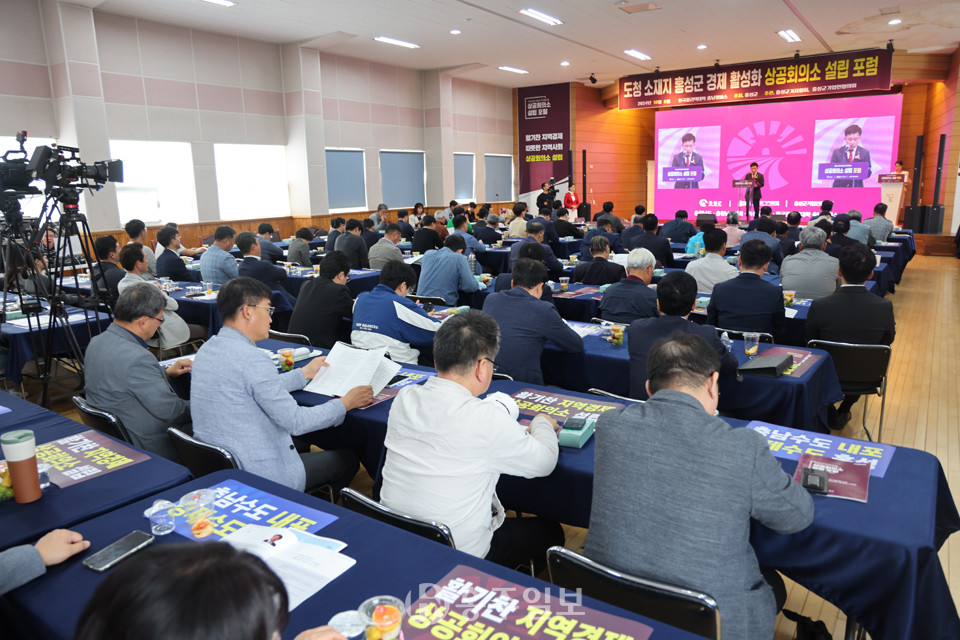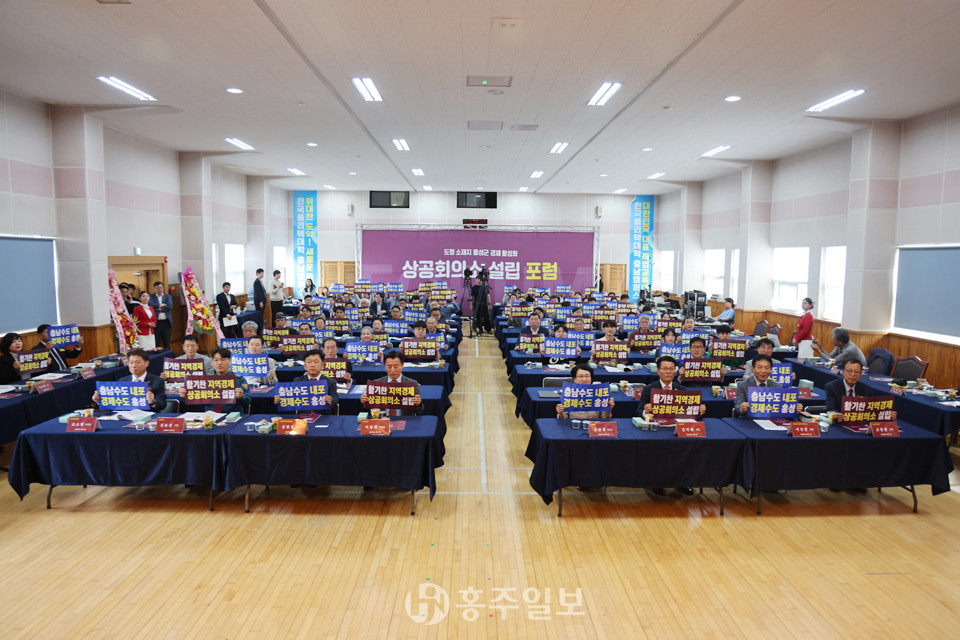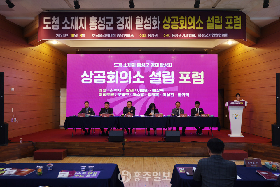 지난 8일 한국폴리텍대학 충남캠퍼스 대강당에서 도청소재지 내 상공회의소 설립 분위기를 조성하고 공감대 확산을 위한 ’도청소재지 홍성군 경제 활성화 상공회의소 설립 포럼‘이 열렸다.<사진>