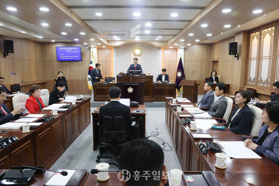 홍성군의회(의장 김덕배)는 지난 15일부터 17일까지 의회 본회의장에서 제308회 임시회를 개회했다. 군의회는 이번 임시회에서 이용록 군수와의 군정질문과 조례안·일반안건을 심의·의결했다.