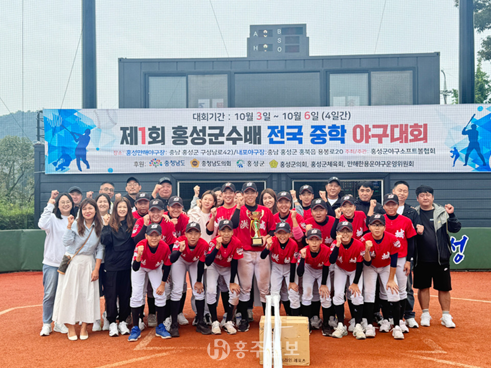 홍성BC는 지난 3일부터 6일까지 결성면 만해야구장에서 개최된 ‘제1회 홍성군수배 전국중학야구대회’ 결승에서 수원 서호중BC(감독 지희수)를 9:7로 승리하며 대회에 참가한 12팀중 우승컵을 들어올렸다.