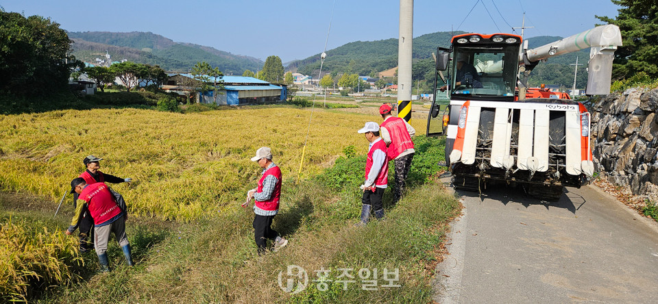 대한노인회 홍성군지회 서부면분회(회장 정홍모)가 지난 12일 노인 일자리화 사회활동 지원사업의 일환으로 서부면 이호리와 광리 일원에서 뜻깊은 벼 수확 활동을 진행했다.