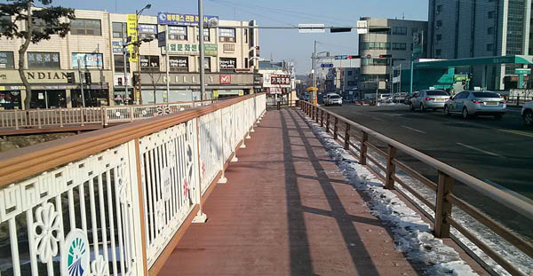 평소 보행통행이 많음에도 그간 보도와 차도의 구분이 없어 사고의 위험이 높았던 홍성교~무명교 구간에 인도데크가 설치돼 보행환경이 크게 개선됐다. 이번에 완공된 홍성교 확장 및 인도설치 사업은 사업비 4억원을 투입해 홍성교 교량구간 96m와 홍성교 천변도로 116m 구간에 대해 안전한 확장 인도를 설치하고 하류교량 부분에는 인도데크를 설치한 사업이다.