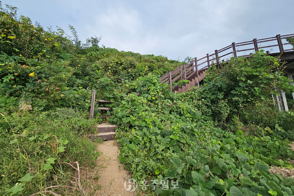 지난 3일 홍성스카이타워와 해변 사이에 위치한 산책로 데크 계단 양쪽에 무성하게 잡초가 뒤덮고 있어 통행에 불편을 주고 있다는 독자의 제보가 있었다. 홍성군 관광개발팀 관계자는 “추석 명절 전에 제초작업을 한 바 있으나, 현장을 확인하고 조치하겠다”며 “10월 중 다시 제초작업을 할 것”이라고 밝혔다. 이후 홍성스타이타워의 입장객 10만 명 돌파 축하행사 취재 차 현장을 다시 찾았을 때엔 테크 계단쪽 잡초가 일부 제거되긴 했지만 인근 다른 테크 주변에는 여전히 잡초가 무성했다.
