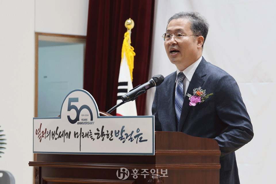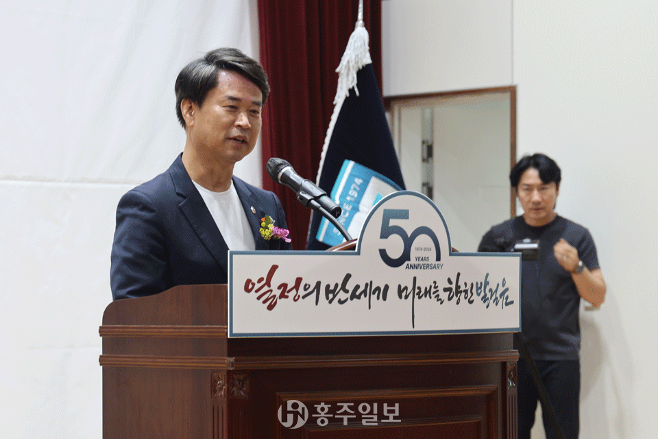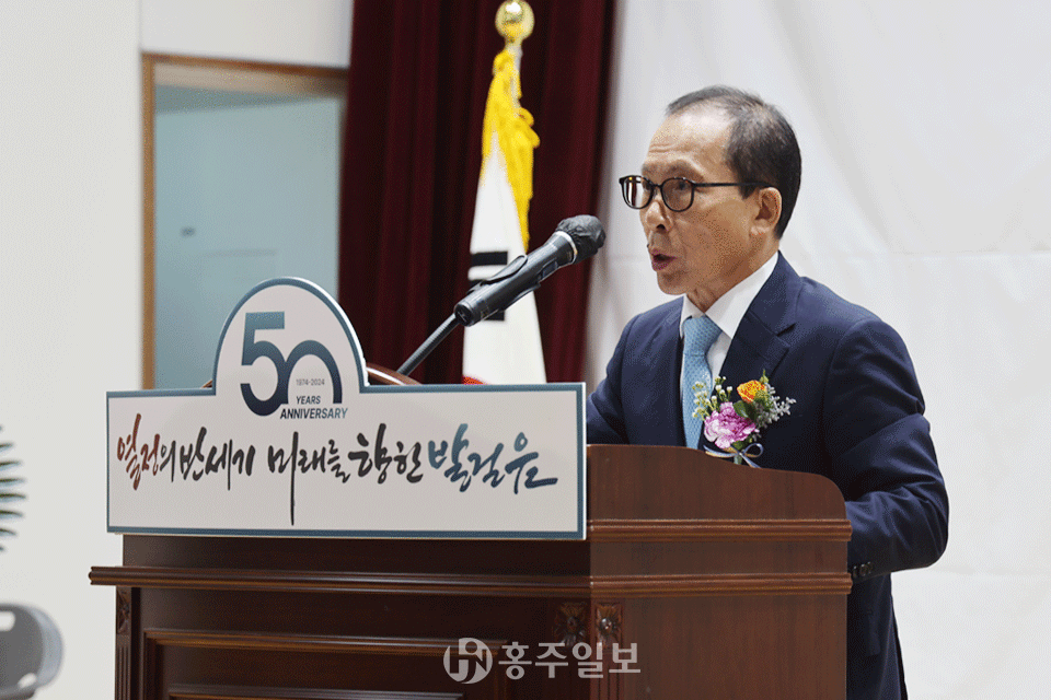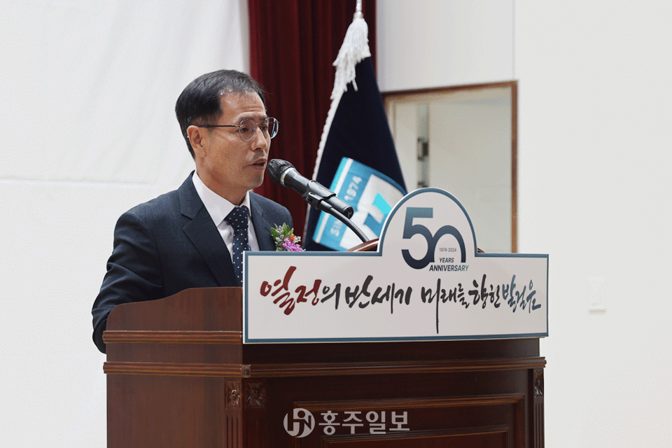 이종필 경영총괄국장은 “오늘 이 자리에 홍주고등학교 개교 50주년을 축하하고, 교육 가족의 노고를 격려해 주시기 위해 찾아 주신 대륭그룹 이주엽 회장님을 비롯한 모든 내빈께 진심으로 감사의 인사를 전한다”며 “학교법인 신암학원 임직원들이 한마음 한뜻으로 최선을 다해 학교 발전을 이끌어 충남을 넘어 전국 최고의 학교로 성장할 수 있도록 노력할 것”이라고 포부를 밝혔다.
