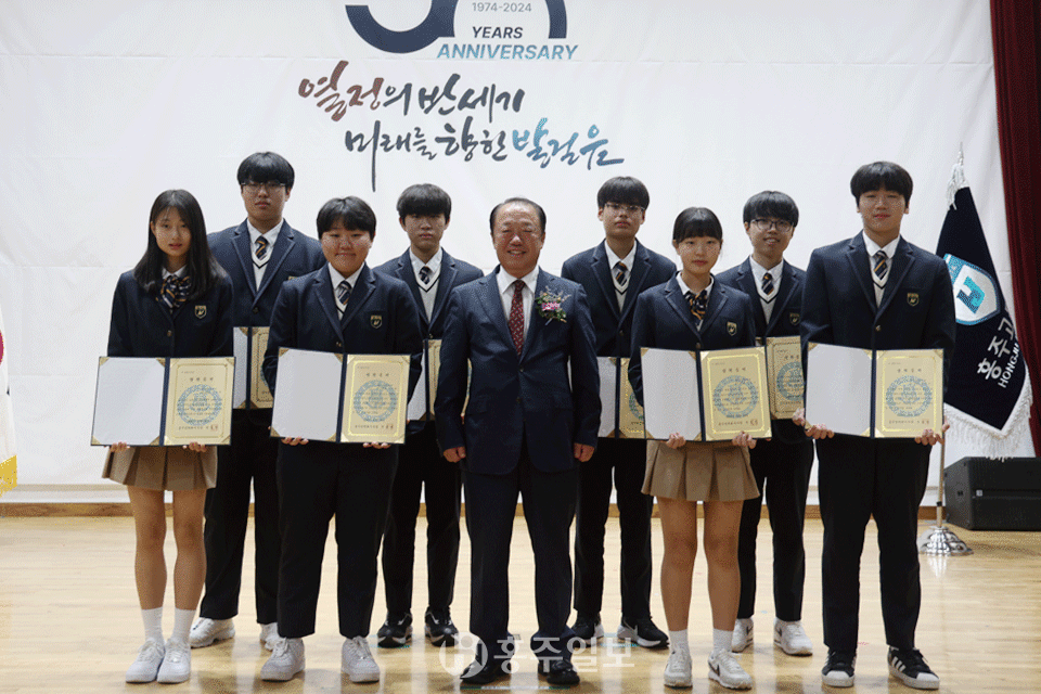 한편 이종필 학교법인 신암학원 경영총괄국장이 개교 50주년을 기념해 이날 발표한 홍주고등학교의 새로운 비전과 중장기 발전 계획인 ‘홍주비전 5.0’에서는 수립경과를 보고하고 미래 비전의 방향성을 제시하는 등 발전을 거듭할 홍주고등학교의 전략과 실천과제를 공개하고 다짐했다.