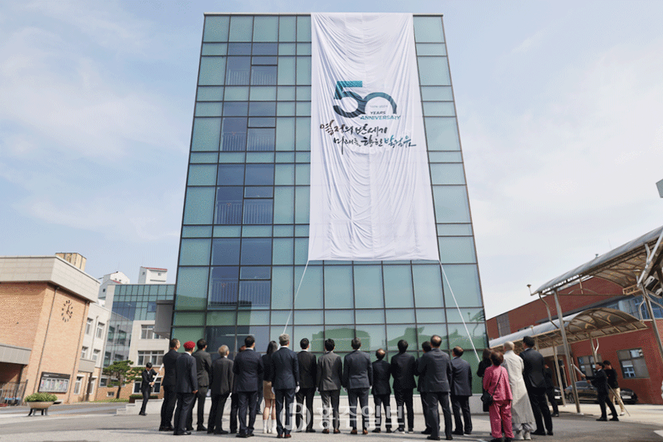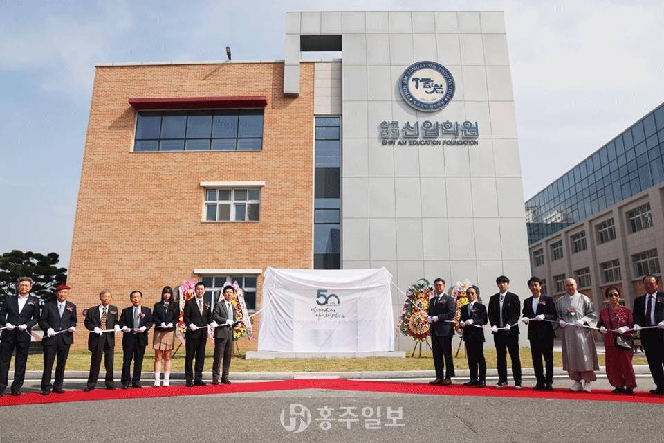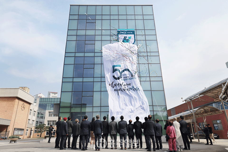 이어진 공적비 제막식에서는 故 이환근 학교법인 신암학원 설립자와 故 이규용 학교법인 신암학원 초대이사장의 약력과 비문을 낭독한 후, 개교 50주년을 기념해 제작된 공적비를 공개했다. 또한 개교 50주년을 맞이해 견고함을 상징하는 ‘방패’와 배움을 상징하는 ‘책’을 모티브로 활용해 탄생한 학교로고 제막식이 이어졌다.